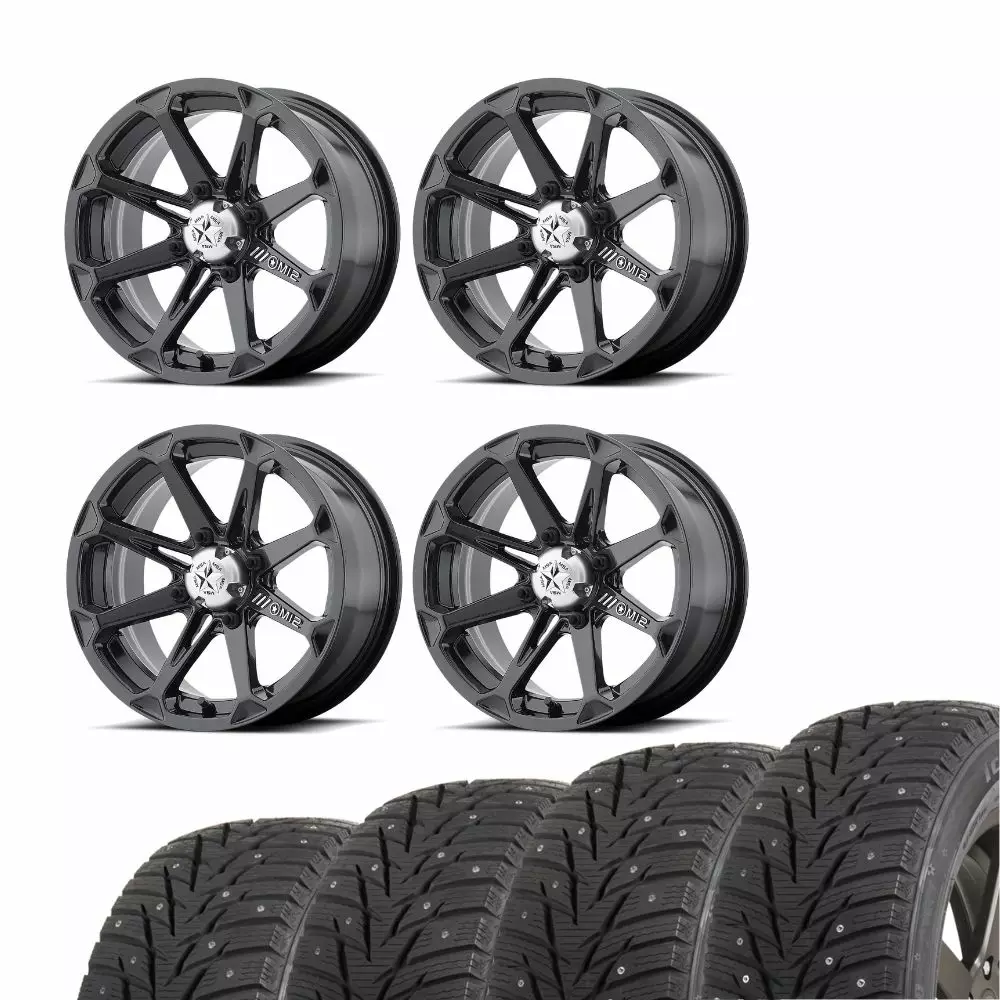POLARIKSEN ALUMIINIVANNESARJA NASTARENKAILLA 15X7 4X156 +10 MSA DIESEL GLOSS BLACK Näyttävät aluvanteet nastarenkailla