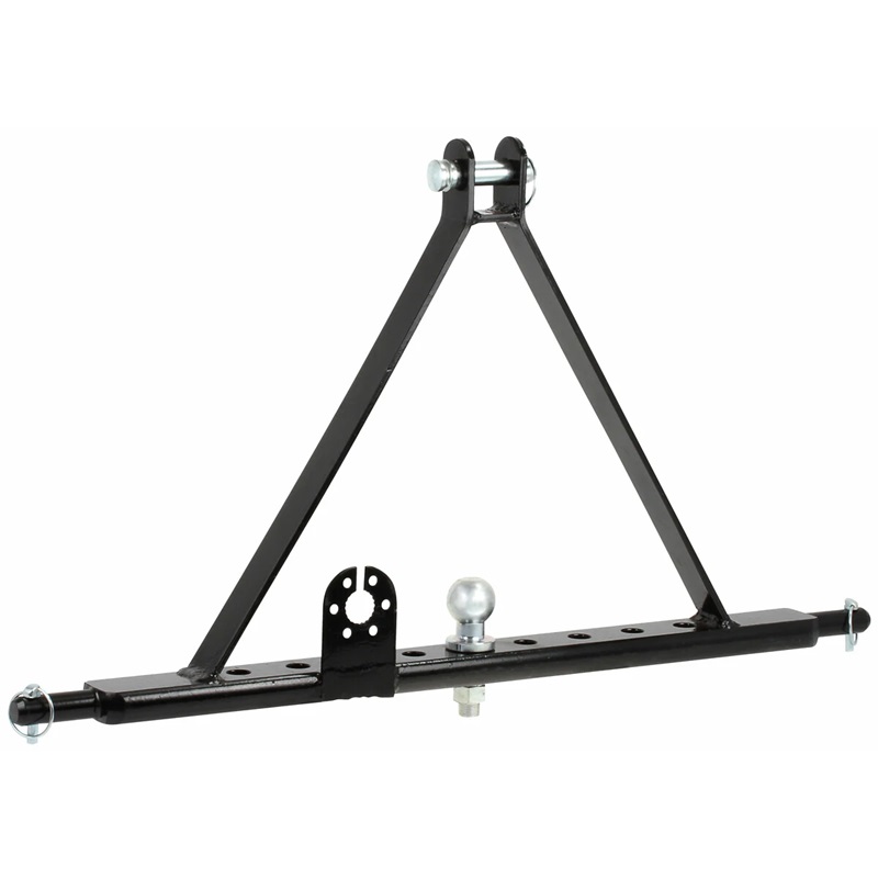 kolmipistekiinnitys CAT 2, 28 mm / 25 mm -leveys 932 mm - korkeus 535 mm - kiinnityslaippa perävaunun pistorasialle - sisältää vetokuulan, sokat ja tapit - max. 85 hv - ei tieliikennekäyttöön... Lue lisää