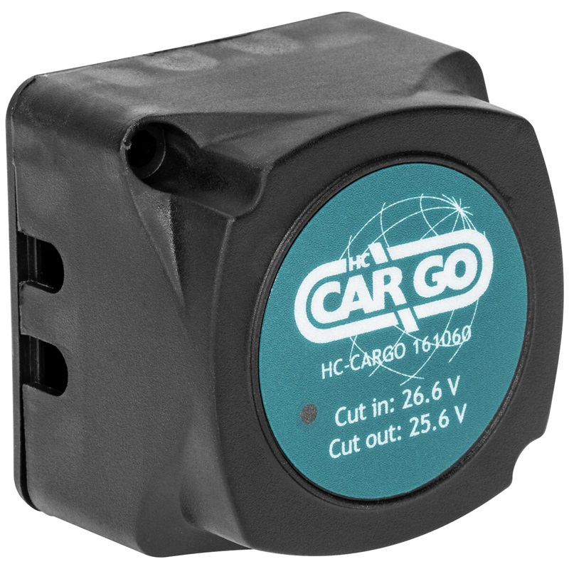 - rele kytkee akut automaattisesti yhteen starttiakun jännitteen noustessa 26,6 volttiin ja irrottaa ne toisistaan jännitteen pudotessa 25,6 volttiin suojaten näin starttiakkua tyhjenemiseltä