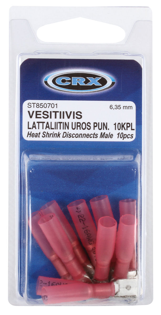 erittäin korkealaatuinen puristettava liitin - lämpökutistuva nailonputki suojaa liitosta mekaaniselta rasitukselta ja liimaa sen vedenpitäväksi - Ø mm: 6,35 - johto mm²: 0,5 - 1,5 - väri:... Lue lisää