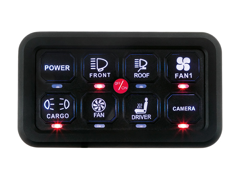 Sopii mainiosti esimerkiksi ajoneuvon/ työkoneen varoitusvaloille, sisävaloille, työvaloille, puhaltimille ym. Sopii esimerkiksi erikoiskuljetus -ajoneuvon ohjauspaneelisarjaksi.
