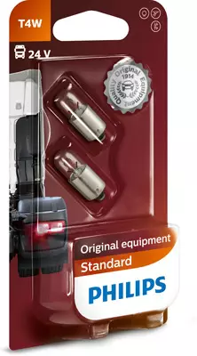 T4W. 4W 24V, BA9s. Itsepalvelupakkaus 2 kpl. Philips autolamput ovat autovalmistajien hyväksymiä laadukkaita ensiasennuspolttimoita lähes kaikissa automerkeissä. Paras valinta autoosi!