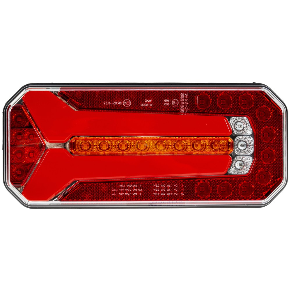- yhdistelmävalaisin: parkki-, jarru-, vilkku-, peruutus- ja rekisterikilven valo - jännite 12 / 24 V - dynaaminen vilkku - LED-polttimot, erinomainen kosteussuojaus IP66/68 - EMC-häiriönsuoja - 5-napainen virtaliitin - kiinnitys 2 kpl M6-ruuveja, väli 150 mm, sisältää mutterit - mitat P 236 x L 104 x S 61,5 mm
