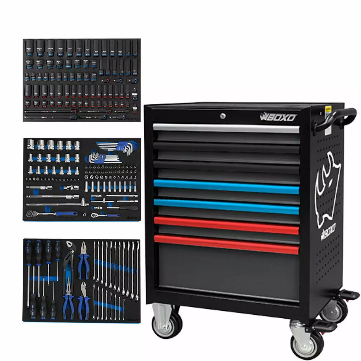 BOXO Työkaluvaunu Värikahva Työkaluilla, 224 osaa