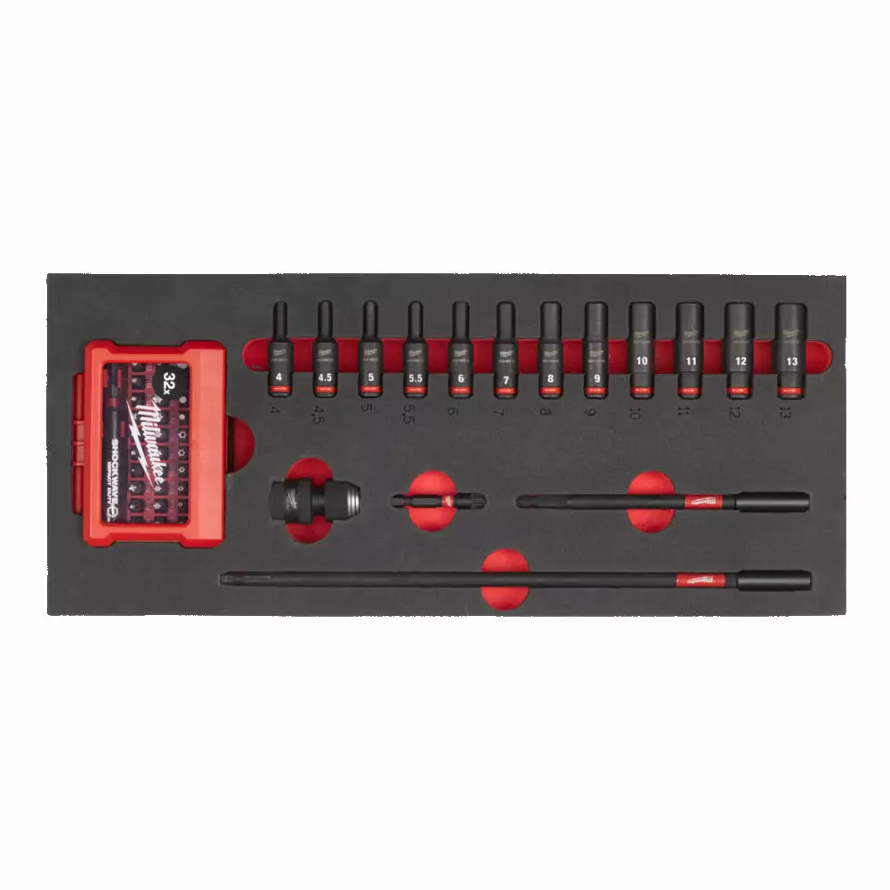Hylsysarja vaahtomuovissa 1/4'' pitkille hylsyille 17-osainen.