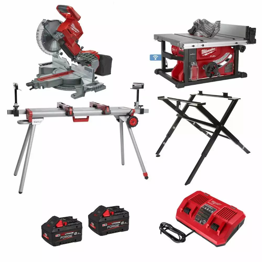 Täydellinen akkusirkkelipaketti suoraan työmaalle! Paketti sisältää akkukäyttöiset katkaisu-jiirisahan M18 FMS254, akkukäyttöisen pöytäsahan M18 FTS210 ja tietysti myös molempiin sirkkeleihin sopivat jalustat! Paketissa olevat tehokkaat Forge-akut takaavat koneista täyden tehon irti työmaalla sekä kahden akun pikalaturi takaa että homma ei tyssää akkujen tyhjentyessä!