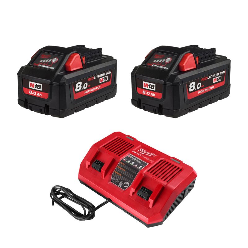 - M18™ HIGH OUTPUT™ REDLITHIUM™ 3,0 Ah / 5,5 Ah / 8,0 Ah / 12,0 Ah -akut latautuvat 36 / 60 / 87 / 130 minuutissa tai jopa nopeammin