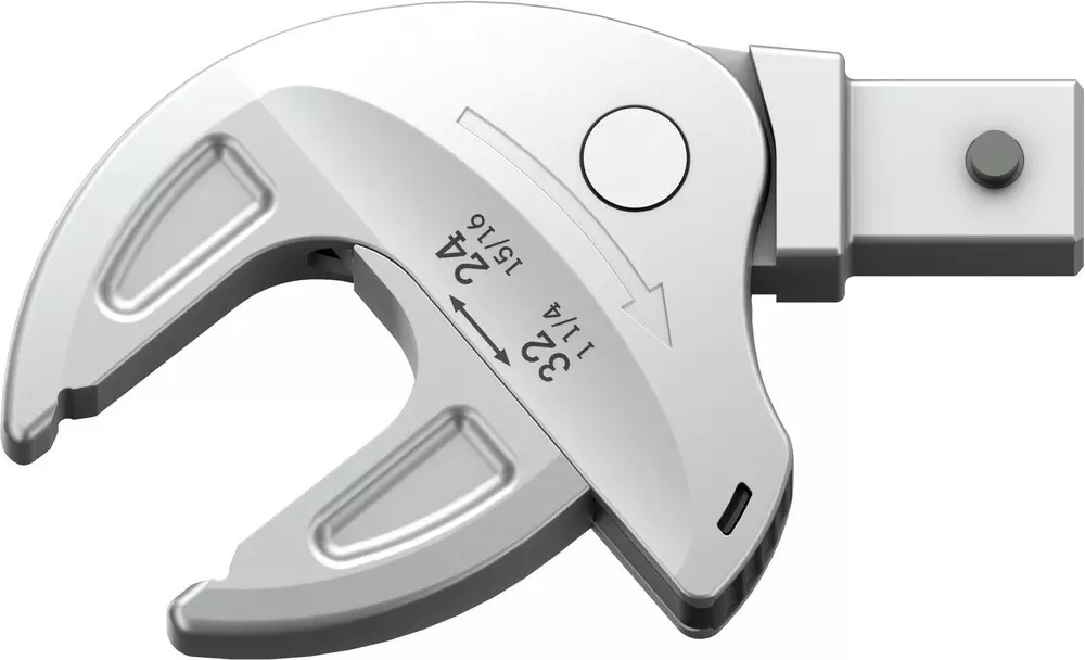 Itsesäätyvä kiintoavainvaihtopää kuusiokantaisille ruuvinpäille tai muttereille, Click-Torque X- ja XP-sarjojen momenttiavaimille, joissa 14 x 18 mm:n kiinnitys. Kattaa kaikki metriset ja tuumaiset mitat kulloisissakin käyttökohteissa. Portaattomasti liukuvien rinnakkaisten leukojen avulla voidaan korvata monta erikokoista kiintoavainta yhdellä. Avain säätyy automaattisesti asettaessasi sen kiinni pulttiin tai mutteriin. Integroitu vipumekanismi kiinnittää mutterin tai pultin tukevasti leukojen väliin, mikä vähentää merkittävästi poisluiskahtamisen ja vahinkojen riskiä. Räikkätoiminto takaa nopean ja sujuvan ruuvauksen ilman avaimen irrottamista pultista tai mutterista. Leukojen pienen hammastuksen ansiosta pystyimme toteuttamaan vain 30°:n palautuskulman.