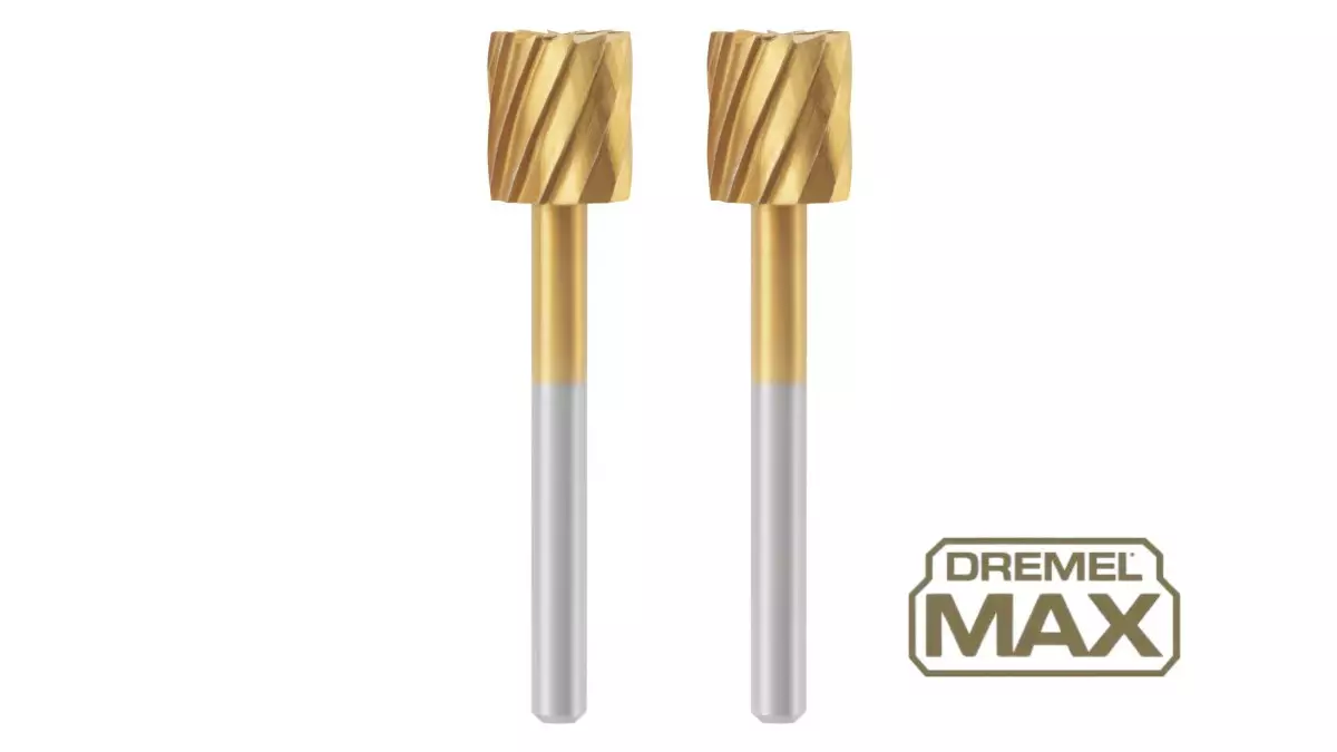 Kovaan käyttöön tarkoitettu Dremel Max -veistoterä 115DM on pinnoitettu titaaninitridillä, ja se kestää kaksi kertaa pitempään kuin tavallinen pinnoittamaton tarvike.
