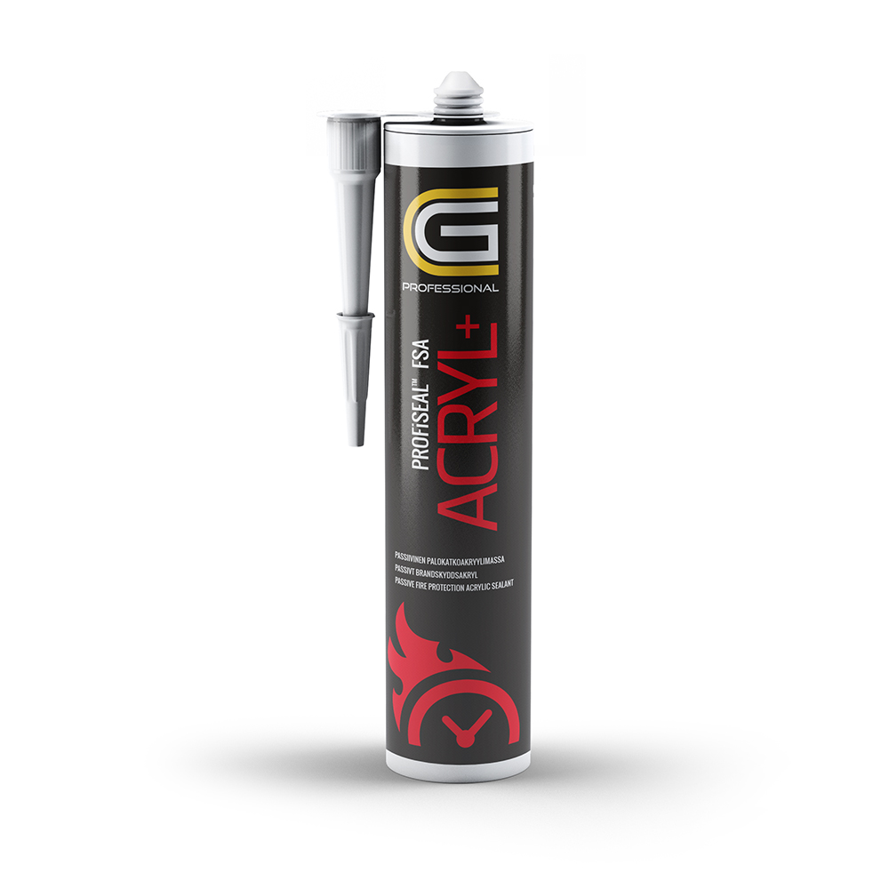 PROFiSEAL™ FSA ACRYL+ (PLUS) on passiivinen palokatkoakryylimassa, joka estää ja hidastaa tulipalon sekä savukaasujen etenemistä saumojen ja aukkojen sekä erilaisten talotekniikka-asennusten kautta palo-osastoivissa seinissä ja lattioissa. Säilyttää rakenteiden suunnitellut akustiset ominaisuudet. Kuivuu levityksen jälkeen elastiseksi tiivistysaineeksi (12,5 %). Soveltuu useimmille rakennuspinnoille kuten betoni, tiili, Leca, teräs, puu, kipsi, lasi, PVC ja useimmat ei-huokoiset pinnat. Turpoaa palotilanteessa muodostaen kestävän, hiilipintaisen palosuojatiivistyksen. Asennetaan sopivan taustamateriaalin kuten kivivillan tai PROFiSEAL FSA Backing sullontavillan kanssa, jolla määritellään oikea massapaksuus. Minimisyvyydet ja maksimileveydet on määritelty erillisissä asennusohjeissa ja detaljikuvissa. Massa aktivoituu termisesti noin 180°C lämpötilassa, jolloin massa turpoaa ja hiiltyy muodostaen palon ja savukaasujen etenemistä estävän pinnan jopa yli 4 tunnin ajaksi. Kestoikä 30 vuotta. Emicode EC1 Plus sisäilmaluokitus (erittäin alhaiset emissiot). ISO 10140-2:2010 ääneneristävyys ≥ 62 dB (12 mm syvä sauma). AMMATTIKÄYTTÖÖN – tutustu aina teknisiin asennusohjeisiin ja rakennuspiirustuksiin ennen asennusta.