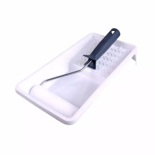 Maalaustelasarja yleisluonteiseen maalaukseen. Tela jättää keskikarkean/karkean pinnan. Valkoinen polyesteritela jatkovarteen sopivalla telanvarrella ja sinkityllä varsilangalla, jossa muovikahva....