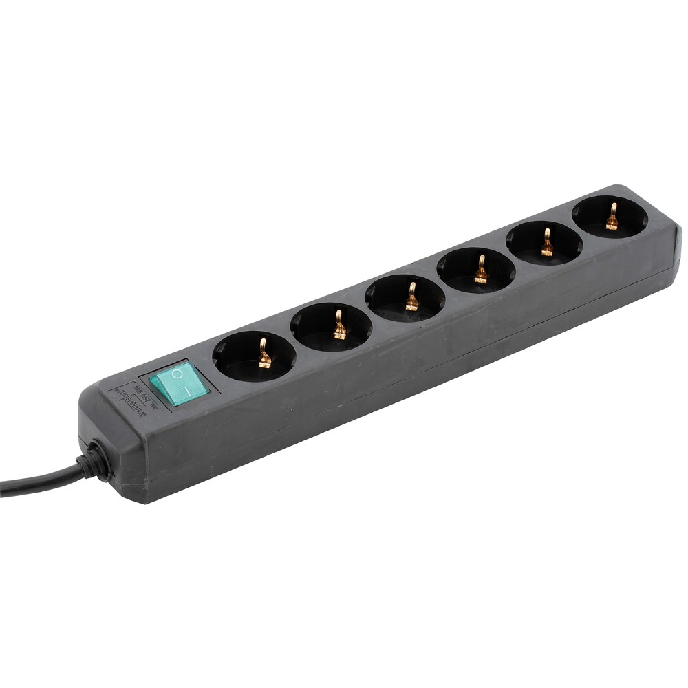 6-haarainen sisäjatkojohto ON/OFF -kytkimellä - johdon pituus 1,5 m (H05VV-F 3G1,5) - pistorasioissa lapsisuoja - sisäkäyttöön - väri musta