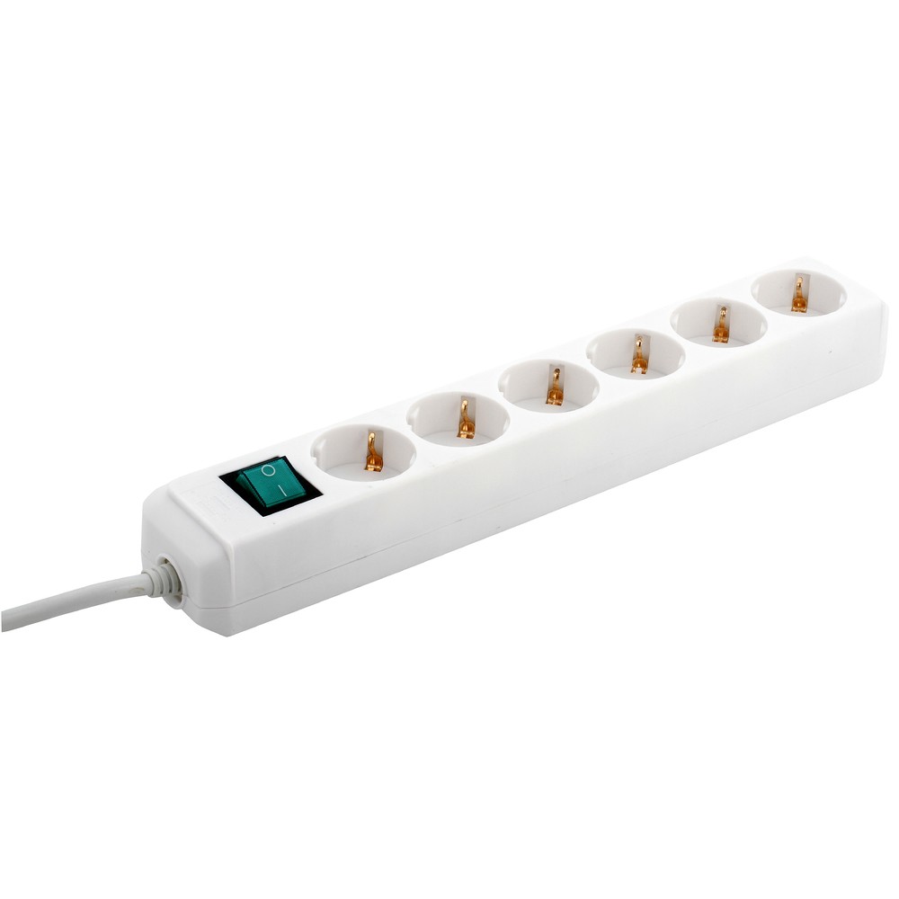 6-haarainen sisäjatkojohto ON/OFF -kytkimellä - johdon pituus 3 m (H05VV-F 3G1,5) - pistorasioissa lapsisuoja - sisäkäyttöön - väri valkoinen