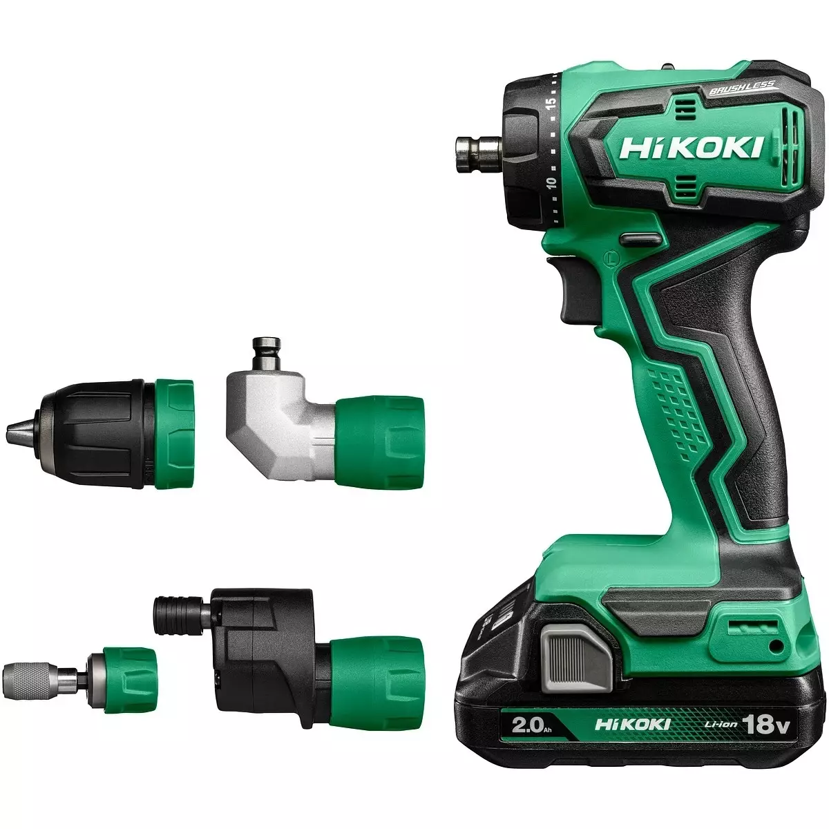 Hikoki PORA/RUUVINVÄÄNNIN DS18DDQ 2AH SRJ kahdella 2,0Ah akulla, laturilla ja pora-adaptereilla.