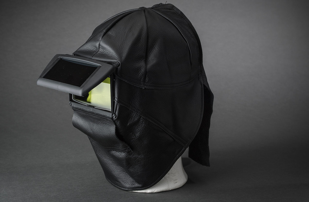 Maski suojaa samalla tehokkaasti hitsaajan koko pään alueen kipinöiltä ja roiskeilta.