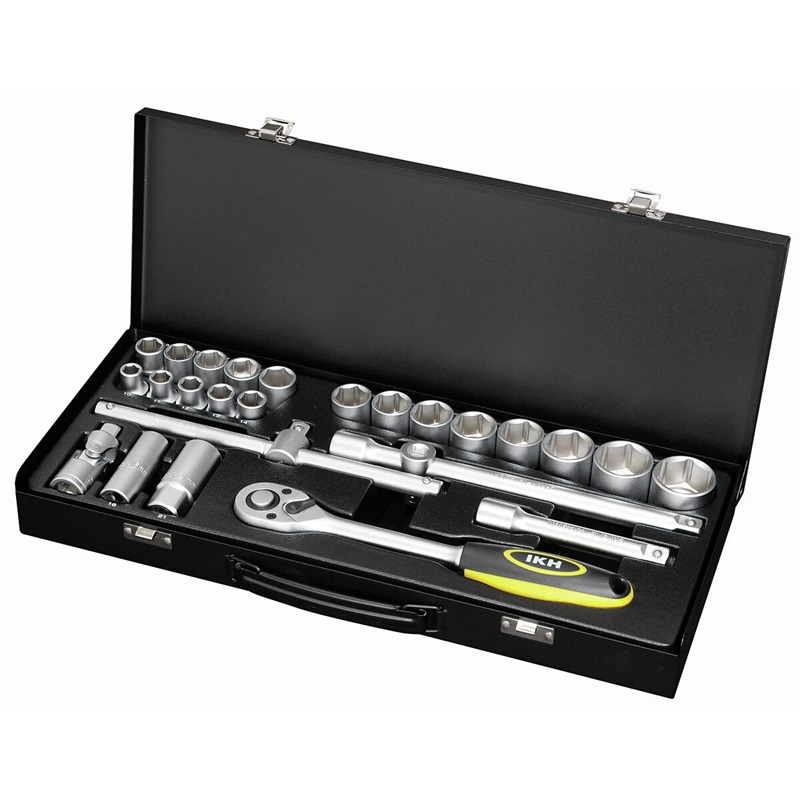 kromivanadiumterästä - 18 kpl hylsyt 10- 32 mm - 2 kpl jatkokappaleet 125 ja 250 mm - 1 kpl T-vääntiö/adapteri 3/8"-1/2" - 1 kpl T-vääntiö varrella 250 mm - 1 kpl nivelkappale - 2 kpl... Lue lisää
