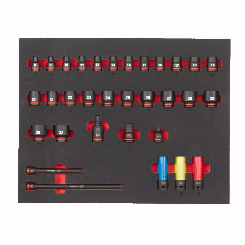 Hylsysarja vaahtomuovissa 1/2'' hylsyille 32-osainen.