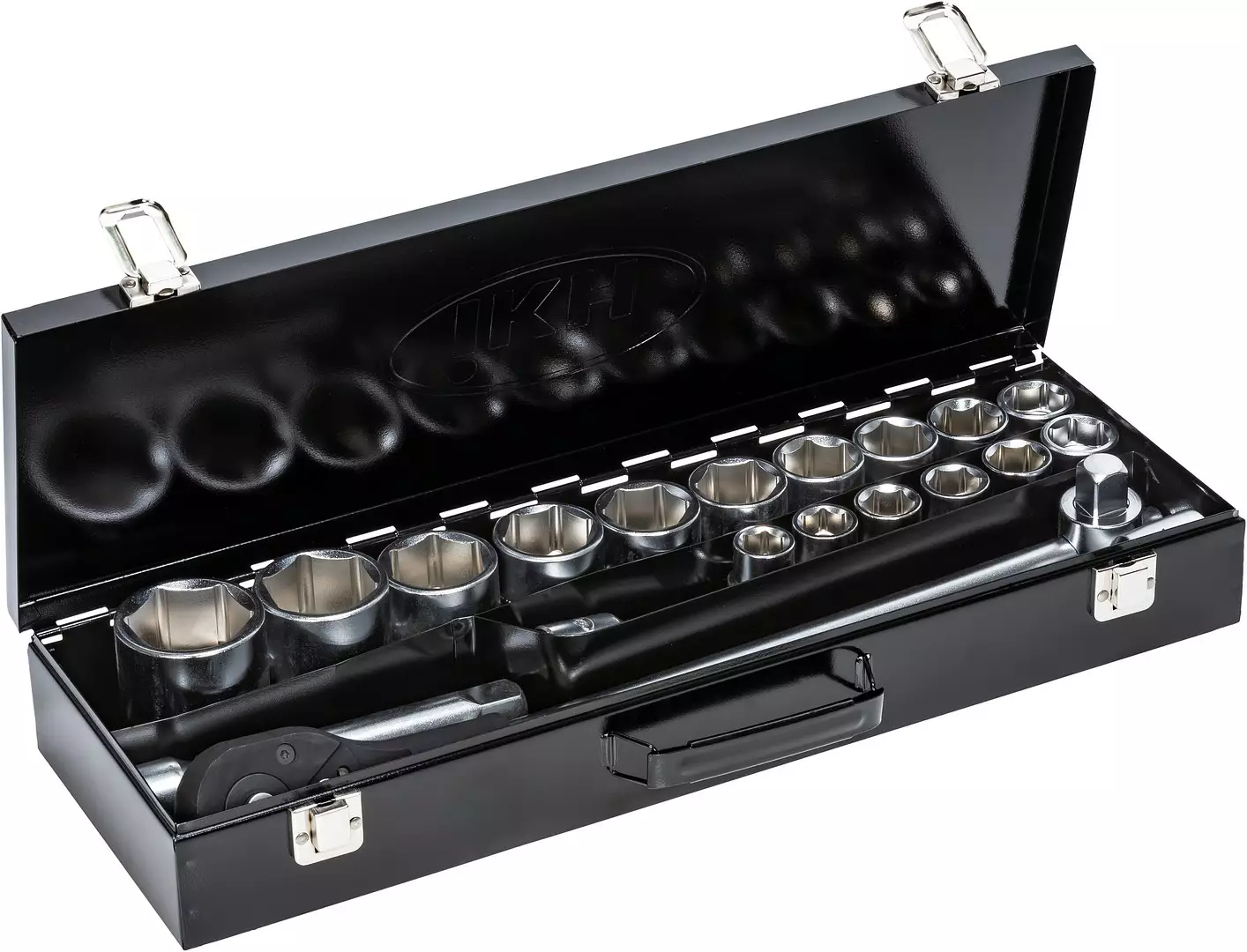 Sarja sisältää: - 16 kpl hylsyt: 19 - 20 - 21 - 22 - 24 - 26 - 27 - 29 - 30 - 32 - 35 - 36 - 38 - 41 - 46 - 50 mm - 1 kpl räikkäväännin pikavapauttimella 3/4" - 3 kpl jatkovarret: 100 - 200 -... Lue lisää