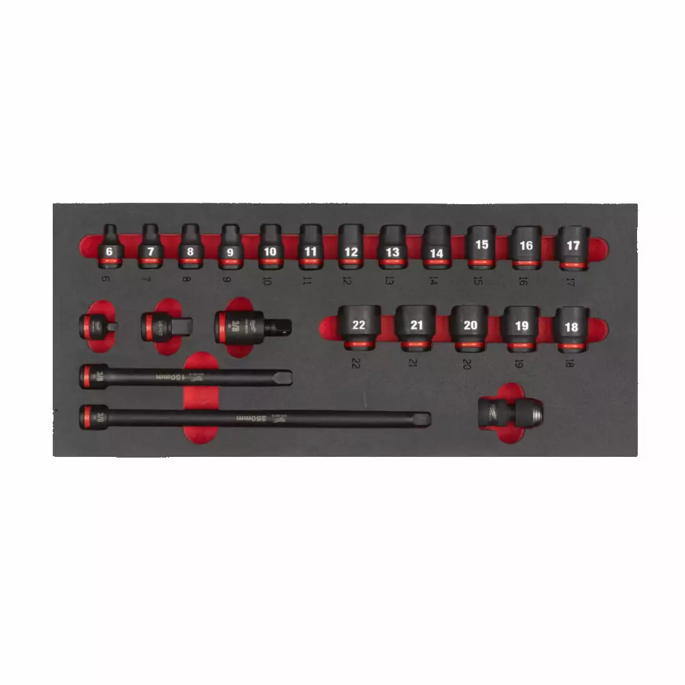 Milwaukee hylsysarja vaahtomuovissa 3/8'' hylsyille 23-osainen.