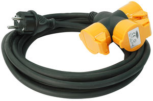 kumikaapeli 10 m, H05RR-F 3x1,5 mm² - 3 x 230 V pistorasia - kolme maadoitettua pistorasiaa itsesulkeutuvilla suojakansilla - suojausluokka IP44
