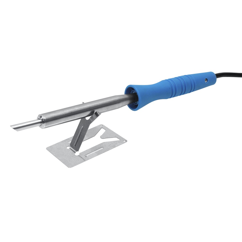 teho 100 W/230 V - johto 1,3 m - juotoskärki Ø 7 mm, viistous 45° - juotoslämpötila n. 500°C - erityisesti lyijylasitöiden juottamiseen