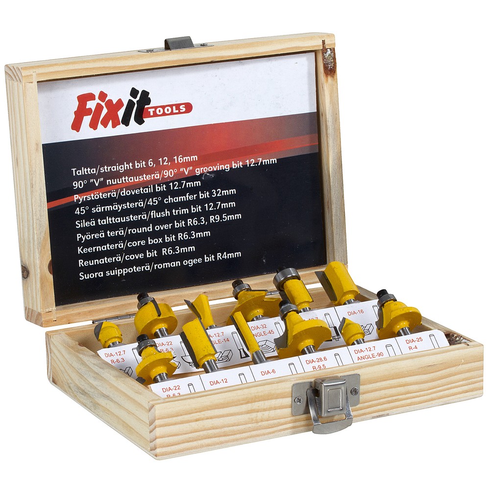 Sarja sisältää: - taltta 6, 12, 16 mm - 90° "V" nuuttausterä 12,7 mm - pyrstöterä 12,7 mm - 45° särmäysterä 32 mm - sileä talttausterä 12,7 mm - pyöreä terä R 6,3 mm, R 9,5 mm -... Lue lisää