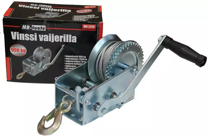 Vinssi vaijerilla 900 kg, tuplaratas, 5 mm x 10 m