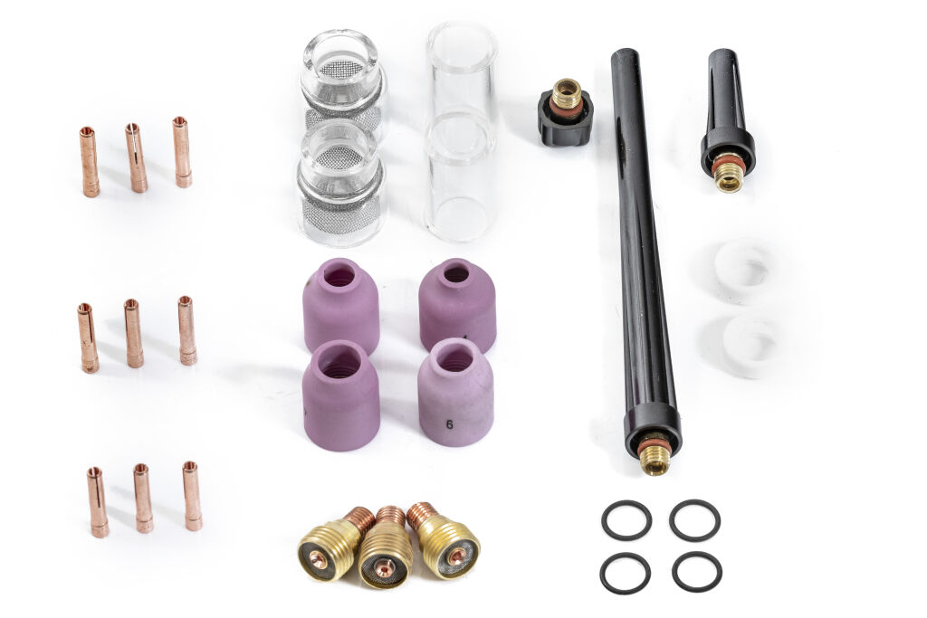Kempin PRO-kulutusosapaketit sisältävät täydellisen kulutusosasarjan TIG-hitsausta varten.