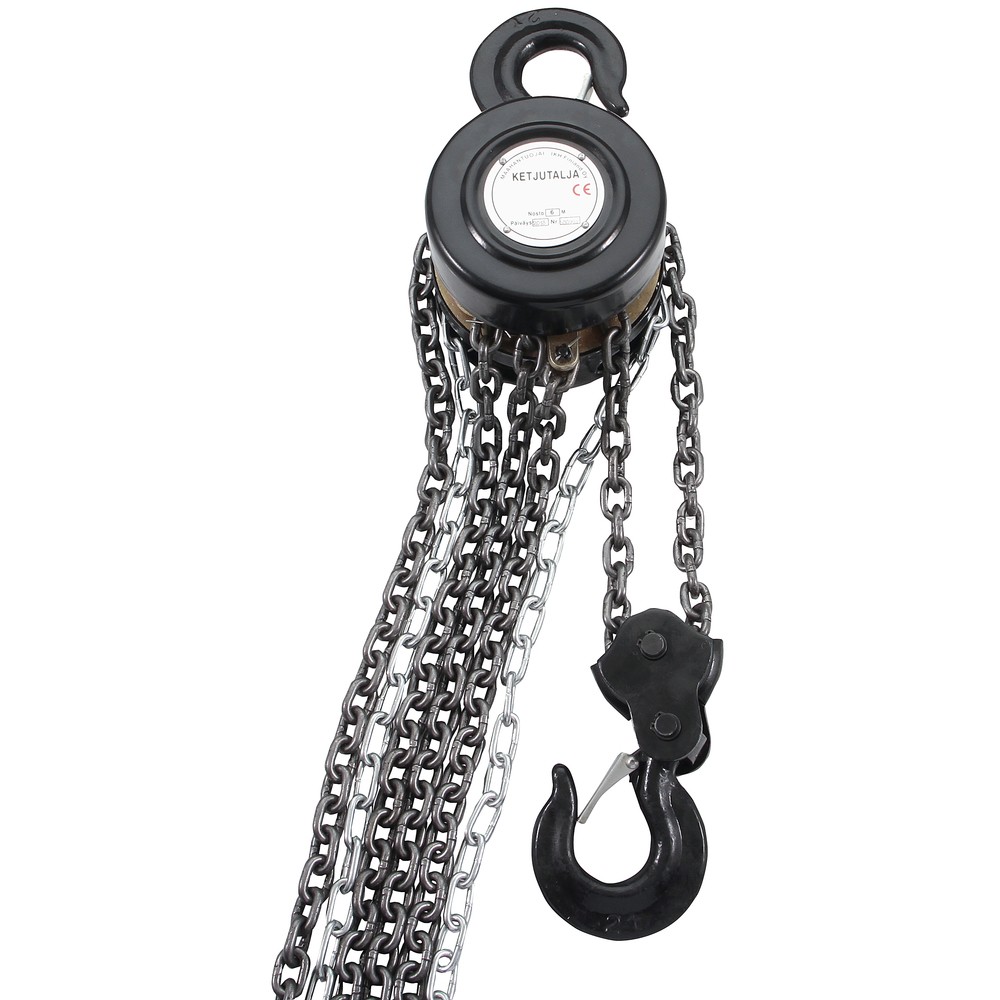 max. kapasiteetti 2000 kg - ketju Ø 6 mm - nostokorkeus 6 m - min. korkeus 420 mm - paino 20 kg
