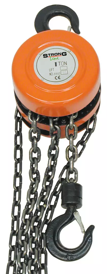max. kapasiteetti 2000 kg - ketju Ø 6 mm - nostokorkeus 2,5 m - min. korkeus 420 mm - paino 14 kg