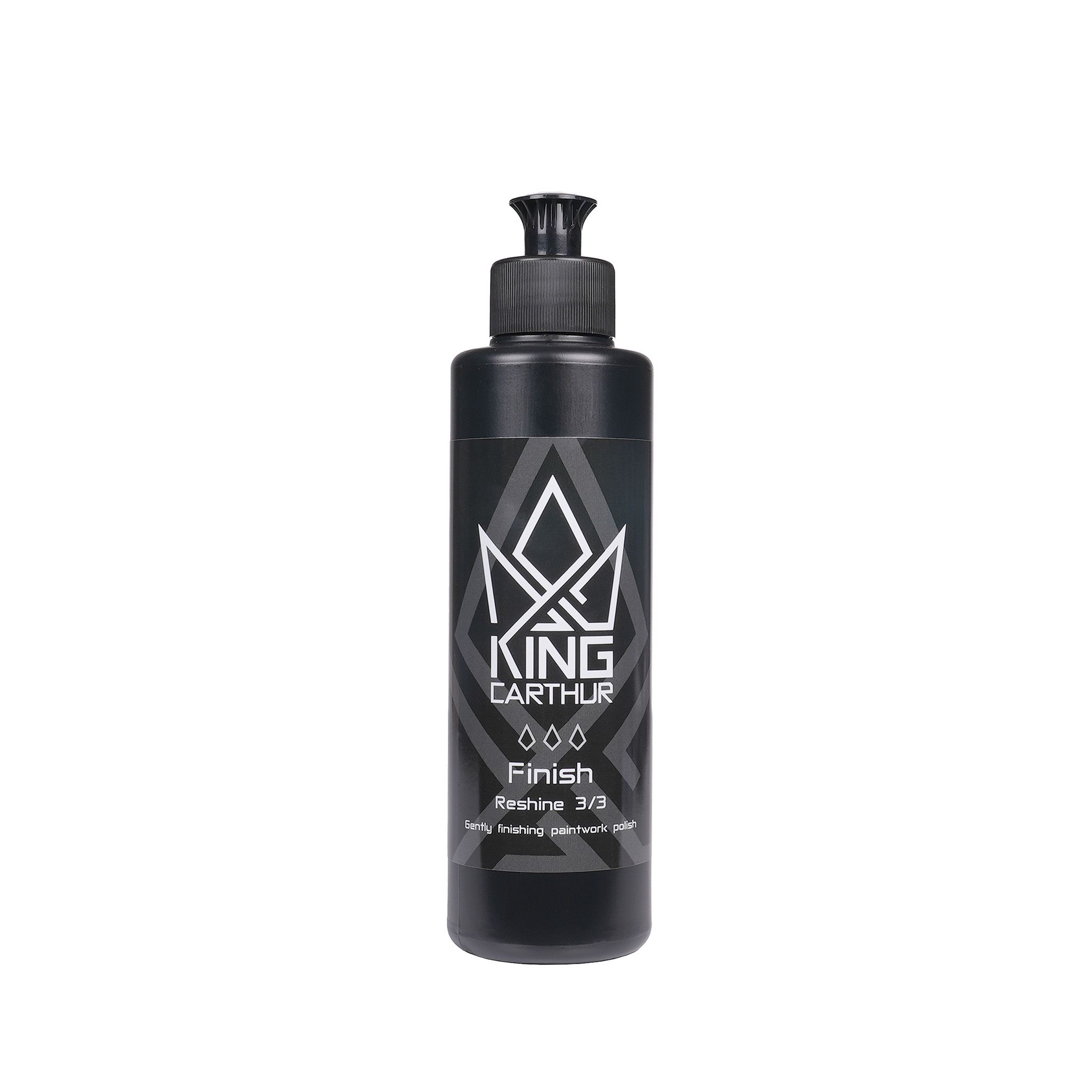 King Carthur Reshine Polish 3/3 on hieno kiillotusaine. Se poistaa tehokkaasti maalipinnoilta hapettumat, himmentymät sekä hiusnaarmut ja hologrammit. Reshine 3/3 on numeronsa mukaan viimeisenä käytettävä kiillotusaine, hieno aine soveltuu täydellisesti viimeistelyyn. Finish-aine poistaa hologrammit ja hiusnaarmut tehokkaasti jättäen jälkeen peilikiiltävää pintaa. King Carthurin aineet soveltuu niin vanhoille pinnoille kuin uudehkoille pientä viimeistelyä vaativille pinnoille. Reshine tuoteperheen kiillotusaineet ovat miellyttäviä käyttää, sitä pystyy työstämään pitkään ennen aineen kuivumista, eikä kiillotusaine juurikaan pölise.
