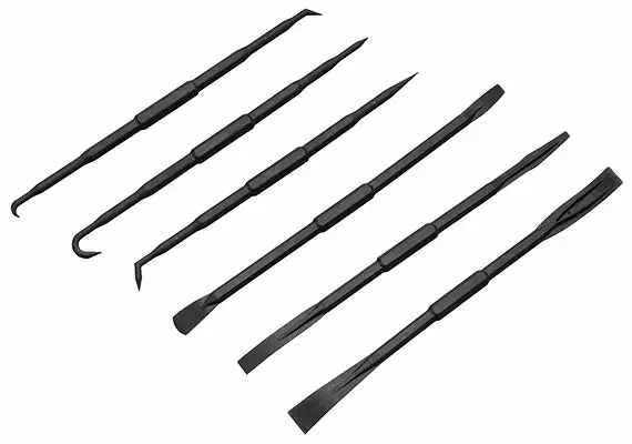 Monikäyttöinen sarja sisältää 6 kpl 268 mm pitkiä vääntötyökaluja ja koukkuja. - Materiaali nylon-lasikuitukomposiitti.