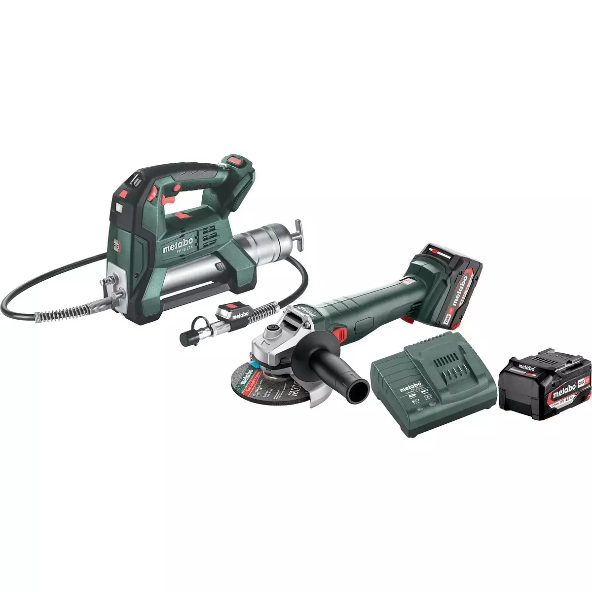 - kulmahiomakone W 18 L 9-125 ja rasvaprässi FP 18 LTX, 2 x Li-Power 18 V 4,0 Ah akku, laturi ASC 30 "AIR COOLED"