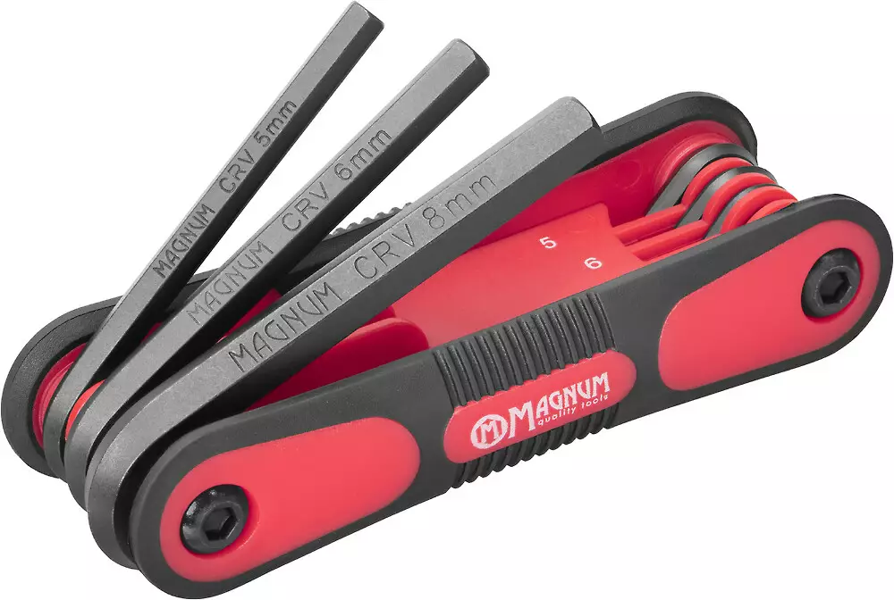 - Kompakti ja tukeva taitettava kuusioavainsarja, jossa on kahdeksan metristä avainta ja mukava kumikahva