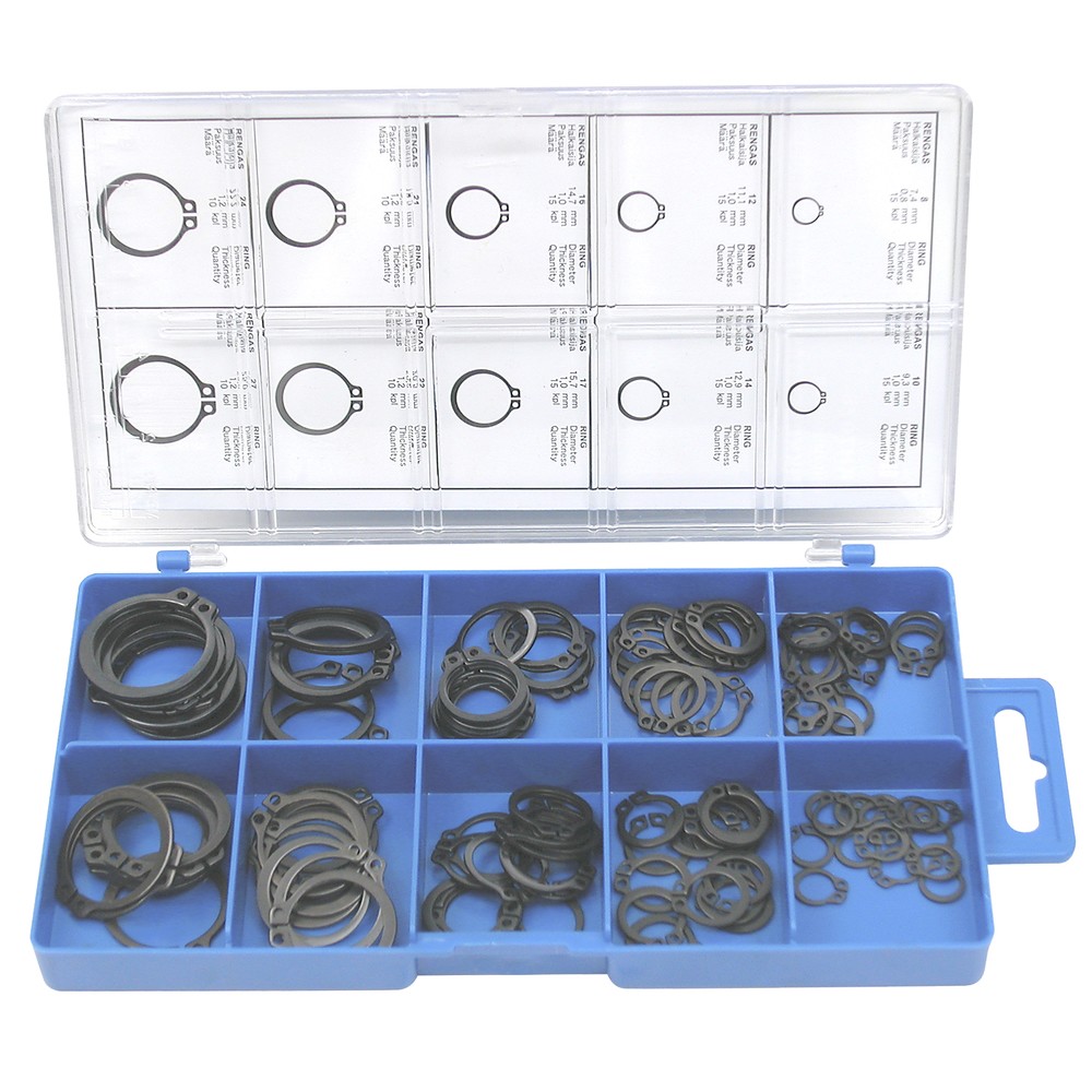 Sisältö: - rengas 8: 7,4 x 0,8 mm 15 kpl - rengas 10: 9,3 x 1,0 mm 15 kpl - rengas 12: 11,1 x 1,0 mm 15 kpl - rengas 14: 12,9 x 1,0 mm 15 kpl - rengas 16: 14,7 x 1,0 mm 15 kpl - rengas 17: 15,7 x... Lue lisää
