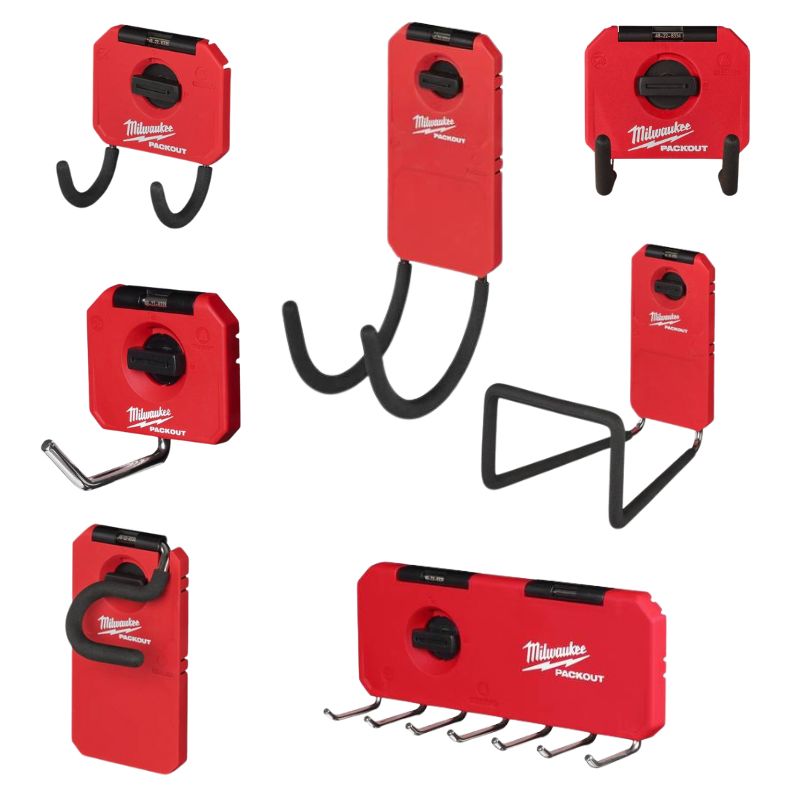 Milwaukee PACKOUT -yleiskoukku, kaareva PACKOUT -säilytysjärjestelmään - Vahvat teräskoukut painavien työkalujen ja esineiden säilyttämiseen - Koukkujen pinnoite suojaa koukkuja ja...