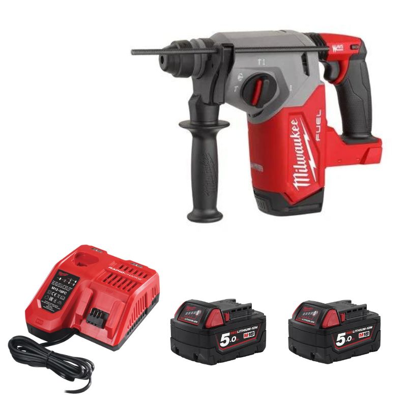 Milwaukee M18 FH-0 SDS+ Akkuporavasara, 2x M18 B5 akut + M12-18 FC pikalaturi. Toimitetaan pahvilaatikossa.