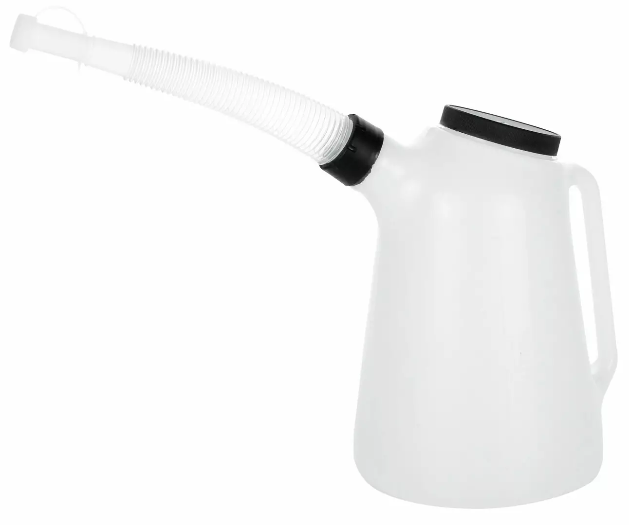 valmistettu korkealuokkaisesta, vahvasta HD-polyeteenistä - valkoinen - ruuvattavalla kannella ja taipuisalla, irrotettavalla kaatonokalla - mitta-asteikko - koko 5 l