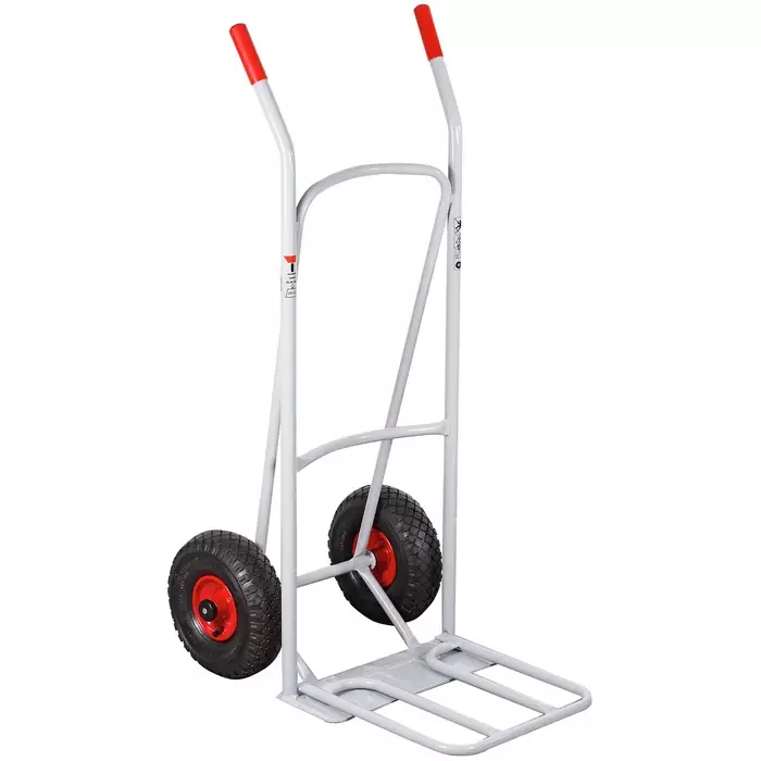 Kantavuus 200 kg - Kuormataso 145 / 390 mm - Korkeus 1120 mm - Leveys 480 mm - Runkoputki 25 mm - Ilmakumipyörät 3,00 x 4 liukulaakereilla - Teräsvanteet - Paino 10 kg