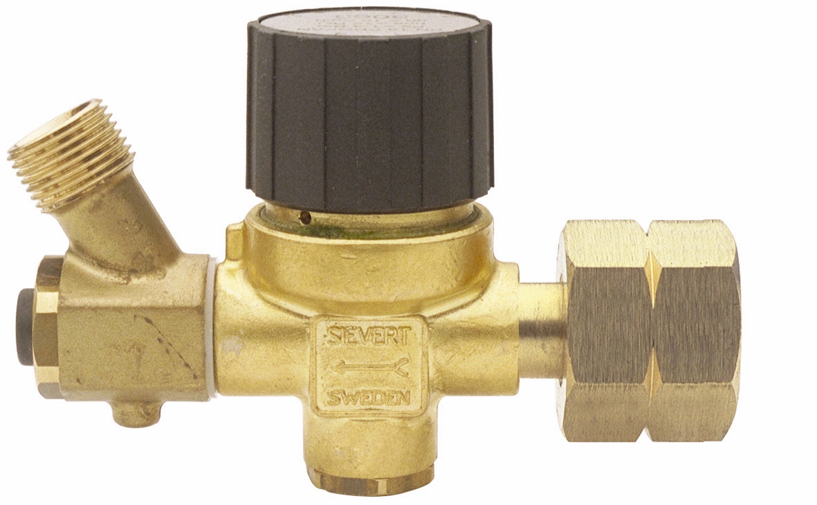 Säädettävä paineensäädin letkurikkoventtiilillä. - Liitäntä: DIN Kombi - Paine 1-4 bar - Läpäisykyky: 5-12 kg/h