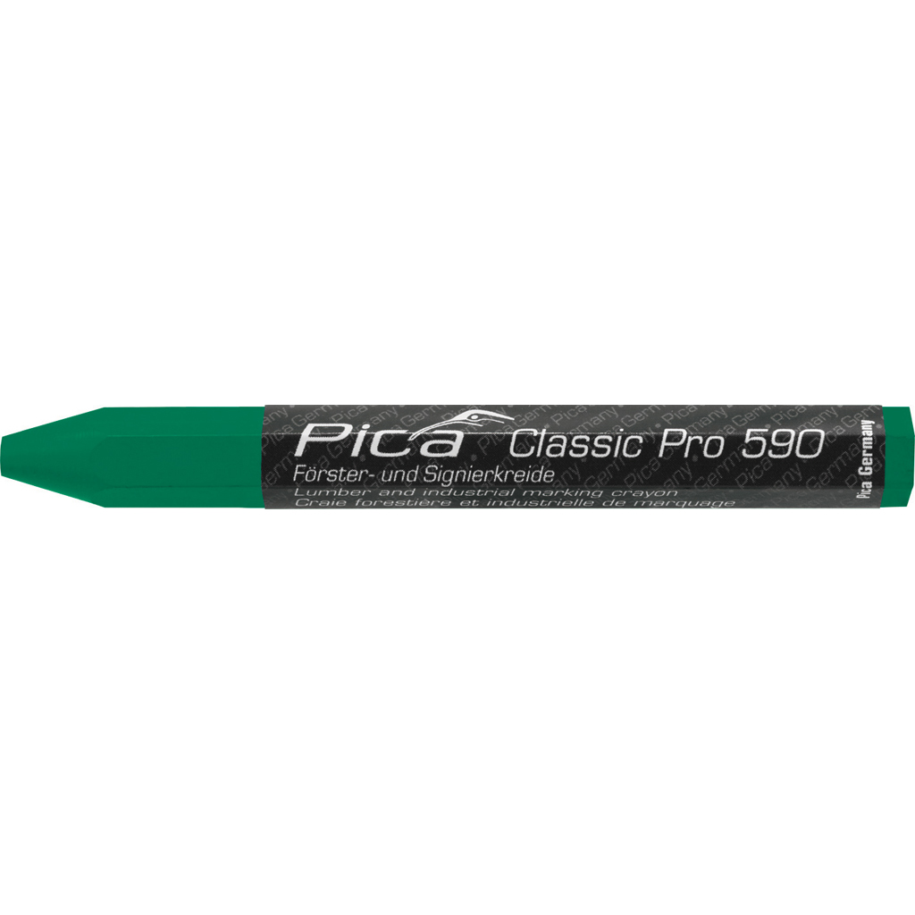 PICA vahaliitu vihreä Classic Pro 590. Premium-laatu, joka on tehty parhaista raaka-aineista ammattimaiseen käyttöön. Ihanteellinen pysyvään merkintään kuivalla ja märällä puutavaralla. Soveltuu myös metalliin, kiveen, betoniin sekä muoviin. Pituus 120mm.