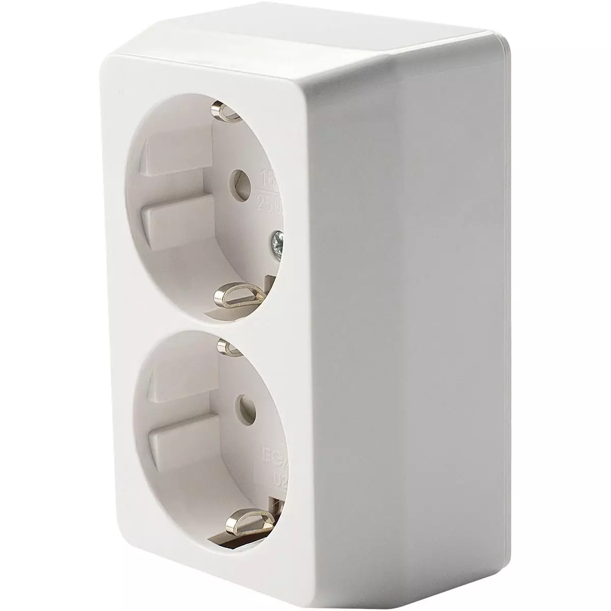 230 V - 16 A - 2-osainen maadoitettu pistorasia - pinta-asennus - lapsisuojattu - halogeenivapaa termoplastinen kotelo - suojausluokka IP20 - mitat L 84 x S 41 x K 84 mm