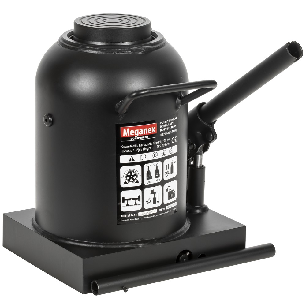 nostokyky 50 tn - nostokorkeus 265-425 mm - varoventtiili suojaa ylikuormitukselta - suositeltu hydrauliikkaöljy VG15-VG32 - mitat 250 x 220 x 305 mm - paino 25,7 kg