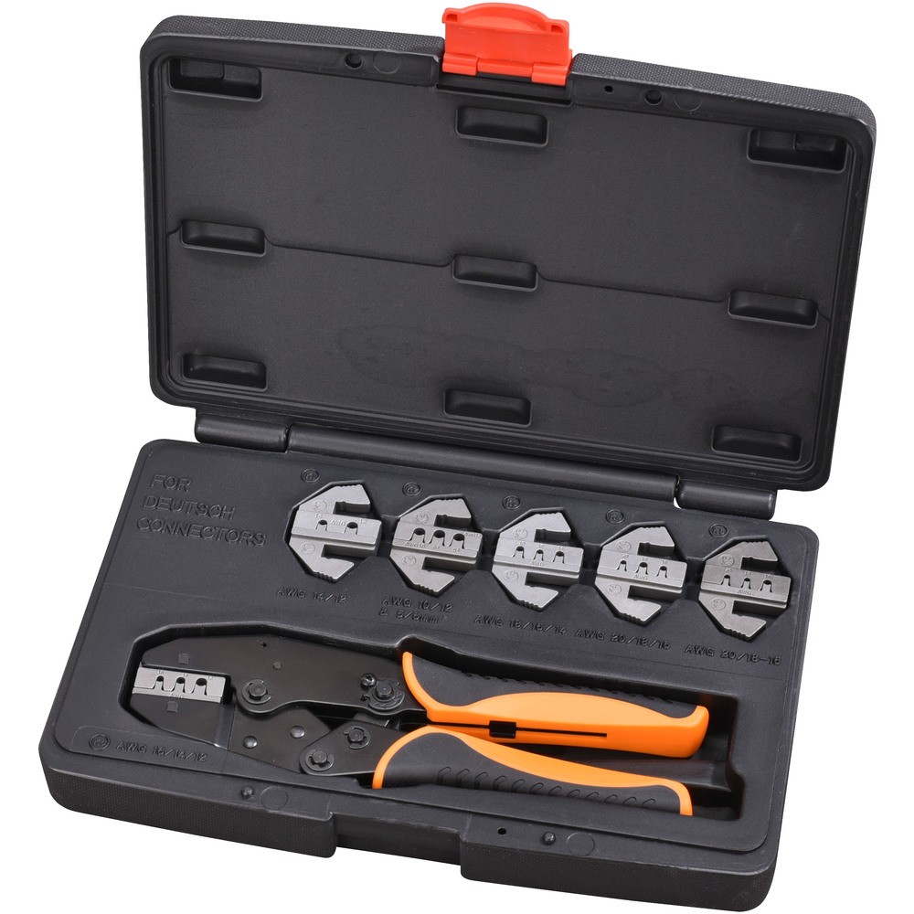 - 6 kpl vaihtopäät K1: AWG 14/12 (DTP) - K2: AWG 10/12 ja 5/6 mm² (DTP) - K3: AWG 18/16/14 (DT) - K4: AWG 20/18/16 (DT) - K5: AWG 20/18-16 (DTM) - K6: AWG 16/14/12 (DT)