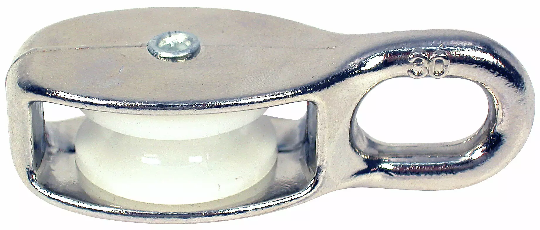 kromi/nylon - koko 30 mm - 1-pyörä - 8 mm köydelle/vaijerille