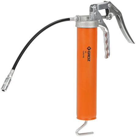 400 g rasvapatruunalle tai irtorasvalle - työpaine max. 345 bar - kierre 1/8" - teräspuristin valupäällä - kumiletku ja 4-leukasuutin - ilmausventtiili