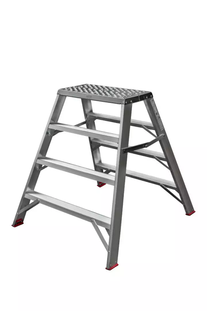 Työpukkien alumiinisen työskentelytason puolien väliin ei jää rakoa, joka tekee tasosta tukevan ja turvallisen työskennellä. Tason rei´itetty pinta antaa erittäin hyvän pidon. Muodoltaan ovaalit reiät on suunniteltu siten, että tasolle mahdollisesti työskentelyvaiheessa päässyt vesi pääsee valumaan pois ja ehkäisee näin pintaan jäätyvän vesikerroksen syntymisen.