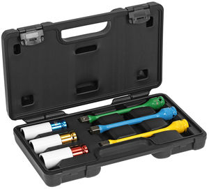 6-osainen rengashylsysarja 1/2" Sarja sisältää: - 3 kpl rengashylsyt 17 - 19 - 21 mm - 3 kpl momenttivarret 90 - 110 - 135 Nm