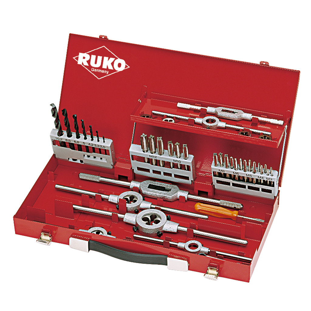 RUKO kierretyökalusarja M3-M12 44-os. Monipuolinen laadukas RUKO kierretyökalusarja 40-osainen HSS hiottu, M. Valmistettu HSS-G -teräksestä, joka takaa erinomaisen suorituskyvyn. Sarja... Lue lisää