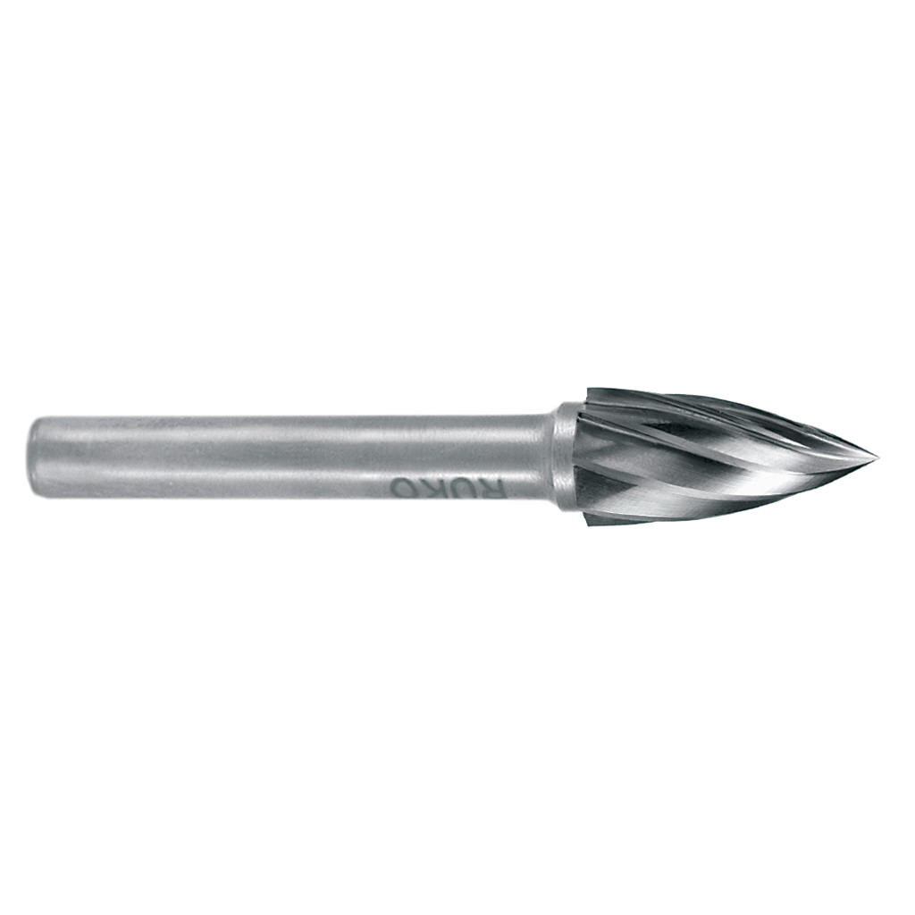 RUKO pyörivä kovametalliviila luotimainen, muoto G. Alumiinihammastus. Soveltuu: Alumiini, messinki, kupari, sinkki, muovit. Pintaväri kirkas, 1 kpl/ muovipakkaus. DIN 8033